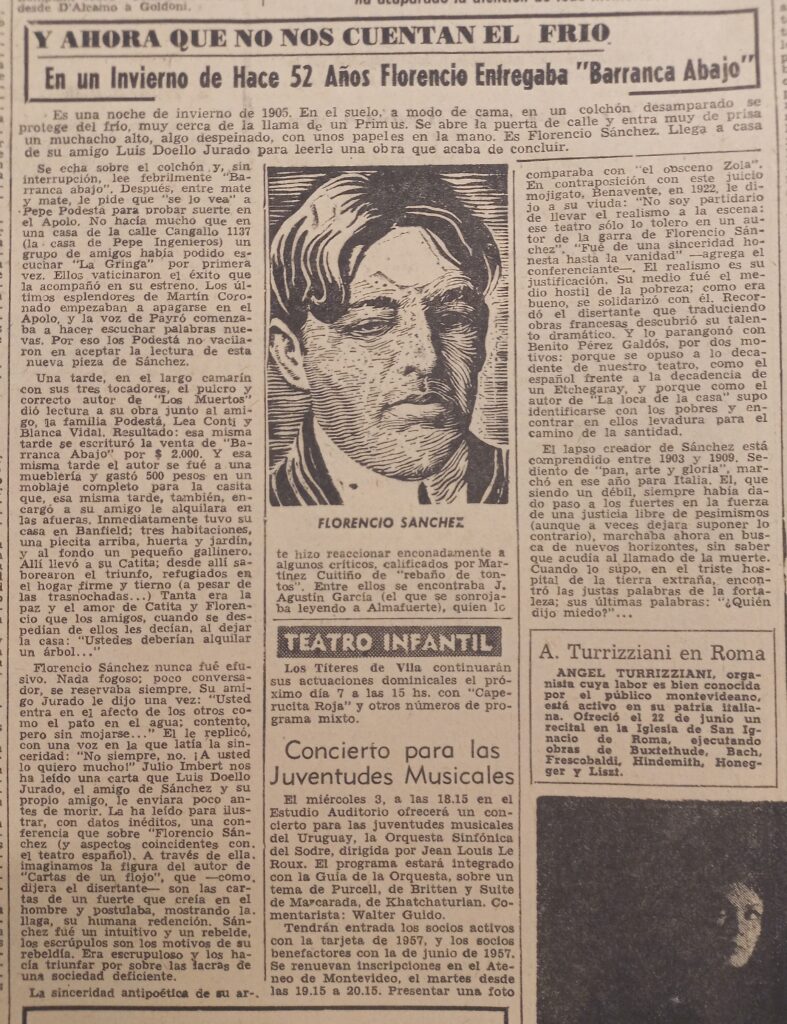 100 Y ahora que no nos cuentan el frío. En un invierno de hace 52 años Florencio Sánchez entregaba Barranca abajo. Acción, julio 2, 1957