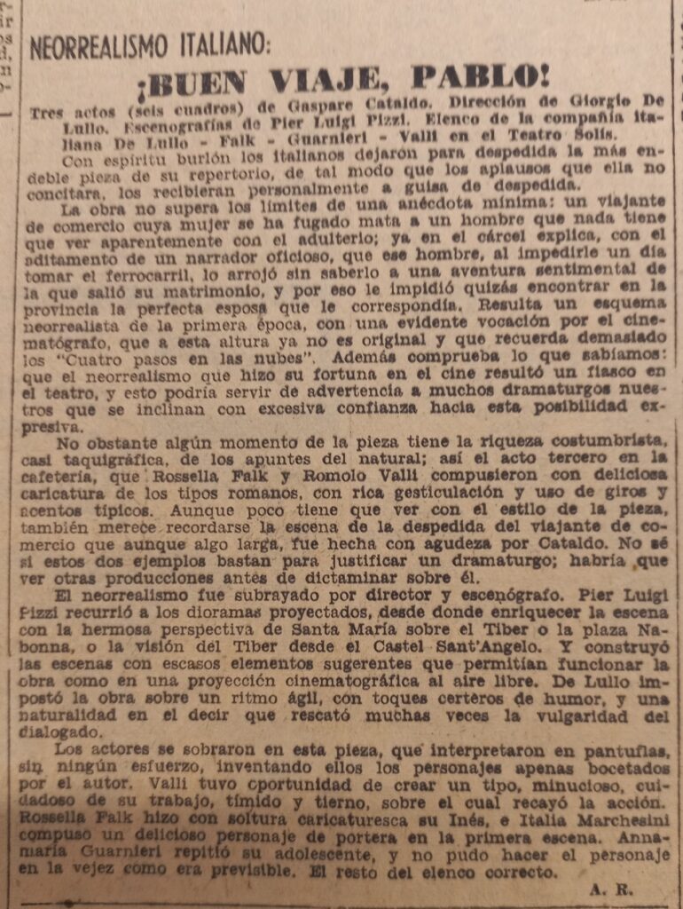 114 Neorrealismo italiano, Buen viaje. Pablo, (de Gaspare Catado, por Compartía Italiana de Lullo-Falk-Guarnieri). Acción, julio 15, 1957