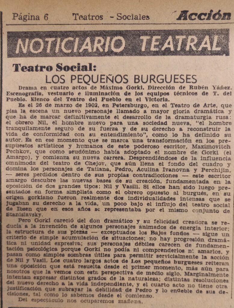 124 Teatro social, Los pequeño-burgueses – I (de Máximo Gorki. por Teatro del Pueblo). Acción, agosto 4, 1957