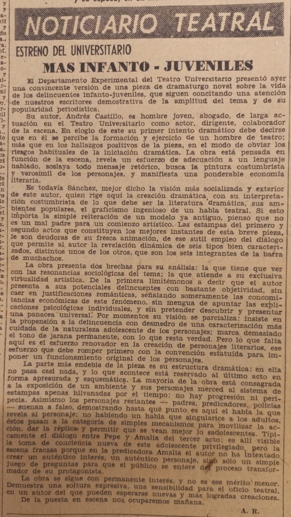 128 Estreno del Universitario. Más infanto-juveniles (La cantera, de Andrés Castillo). Acción, agosto 11, 1957