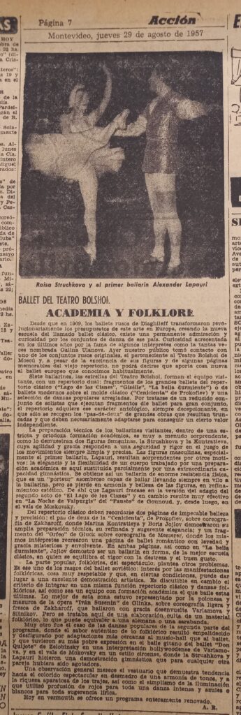 136 Ballet del Teatro Bolshoi, academia y folklore. Acción, agosto 29, 1957