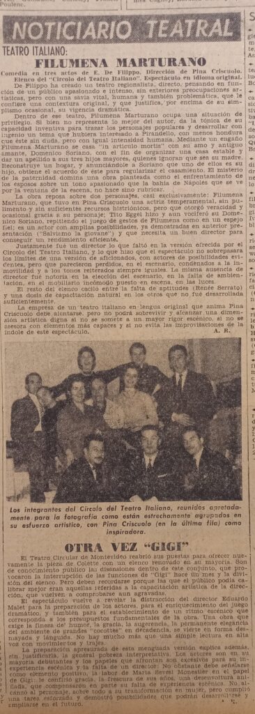138 Teatro italiano, Filumena Marturano (de Edoardo de Filippo, por Circolo de Teatro Italiano). Acción, agosto 31, 1957