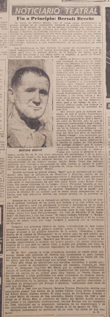 140 Fin o principio. Bertolt Brecht. Acción, setiembre 7, 1957