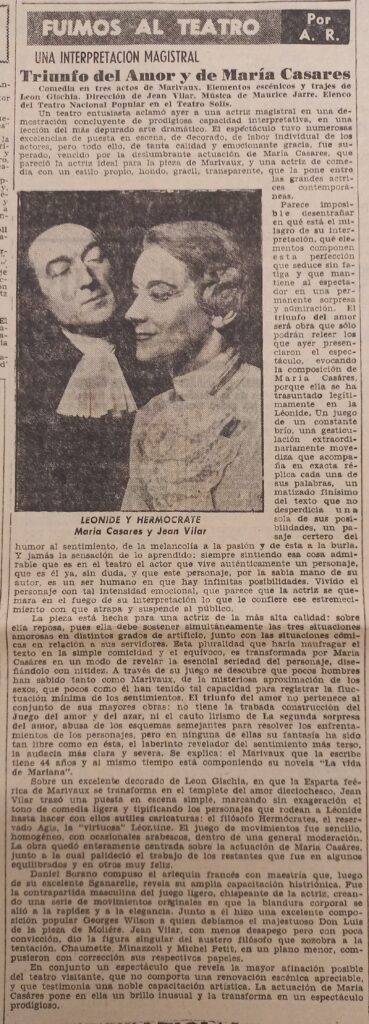 148 Una interpretación magistral. Triunfo del amor y de María Casares (de Marivaux, por Teatro Nacional Popular, francés). Acción, setiembre 24, 1957