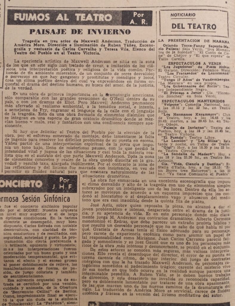 162 Paisaje de invierno (de Maxwell Anderson, por Teatro del Pueblo). Acción, octubre 20, 1957