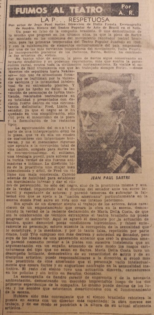 175 La p… respetuosa (de Jean-Paul Sartre, por Teatro Popular de Arte del Brasil). Acción, noviembre 10, 1957