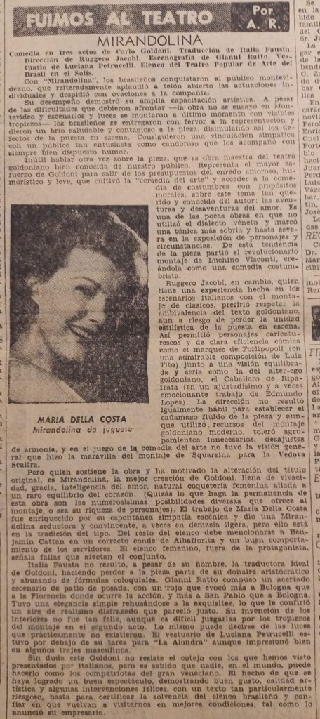 176 Mirandolina (de Cario Goldoni, por Teatro Popular de Arte del Brasil). Acción, noviembre 11, 1957