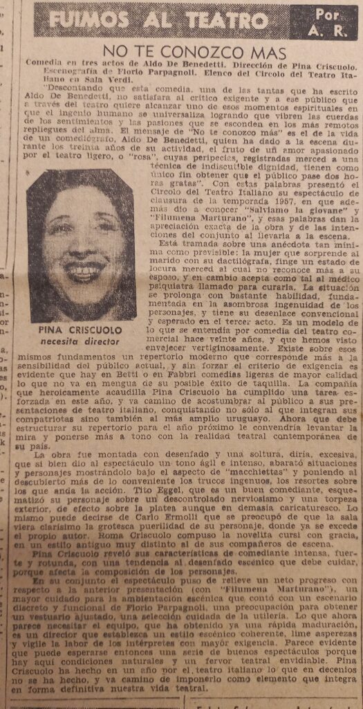183 No te conozco más (de Aldo de Benedetti, por Circolo de Teatro Italiano). Acción, noviembre 29, 1957