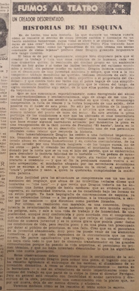 203 Un creador desorientado. Historias de mi esquina. Acción, enero 22, 1958