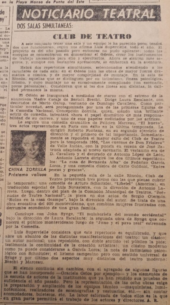 208 Dos salas simultáneas. Club de Teatro. Acción, enero 28, 1958