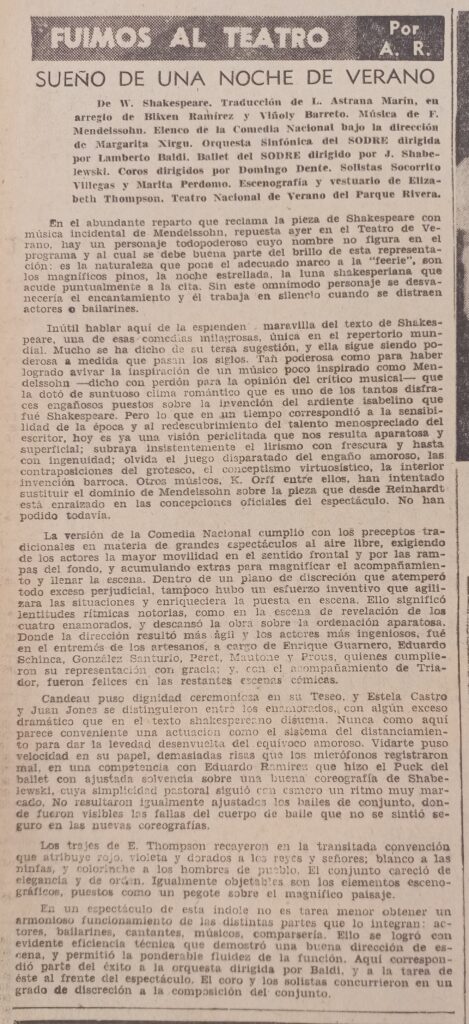 211 Sueño de una noche de verano (de William Shakespeare, por Comedia Nacional). Acción, febrero 2, 1958