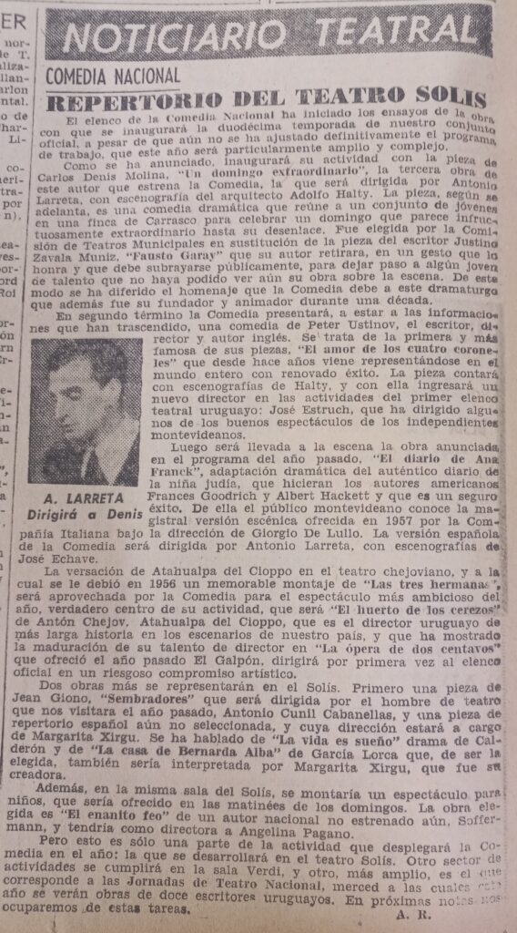 215 Comedia Nacional. Repertorio del Teatro Solis. Acción, febrero 24, 1958