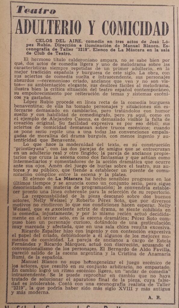 71 Adulterio y comicidad. (Celos del aire, de José López Rubio, por La Máscara). Acción, abril 21, 1957