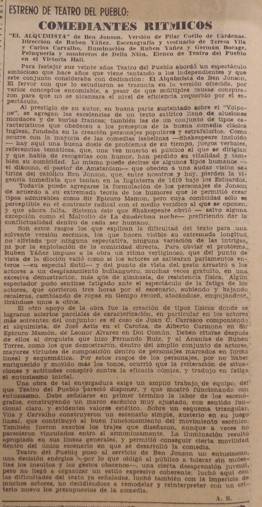 76 Estreno de Teatro del Pueblo comediantes rítmicas. (El alquimista, de Ben Jonson). Acción, mayo 4, 1957