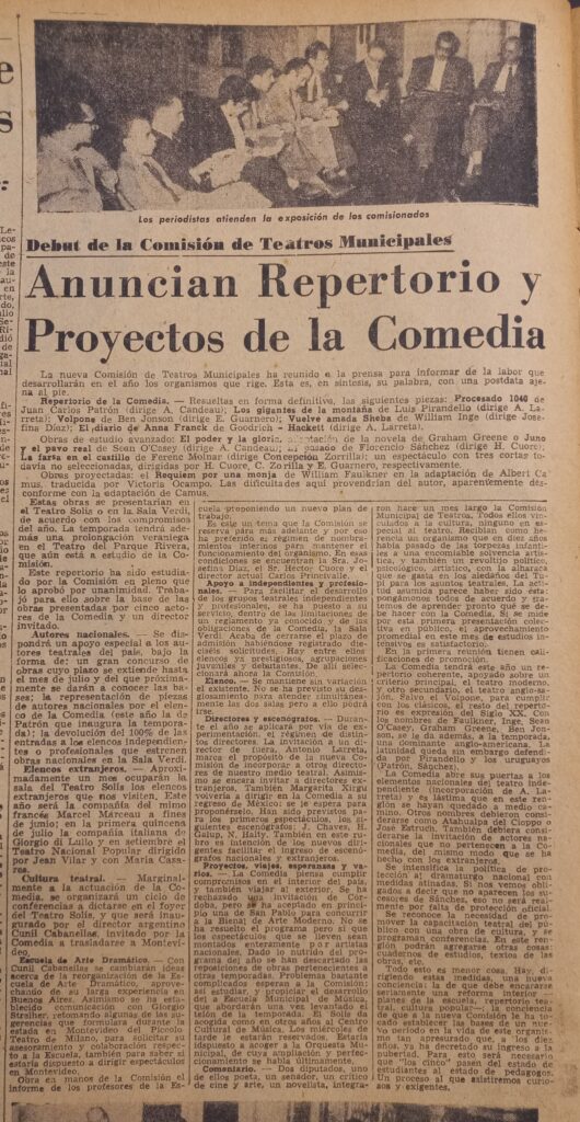 83 Estreno de la Comedia Nacional. Pirandello y sus fantasías. (Los gigantes de la montaña). Acción, junio 1, 1957
