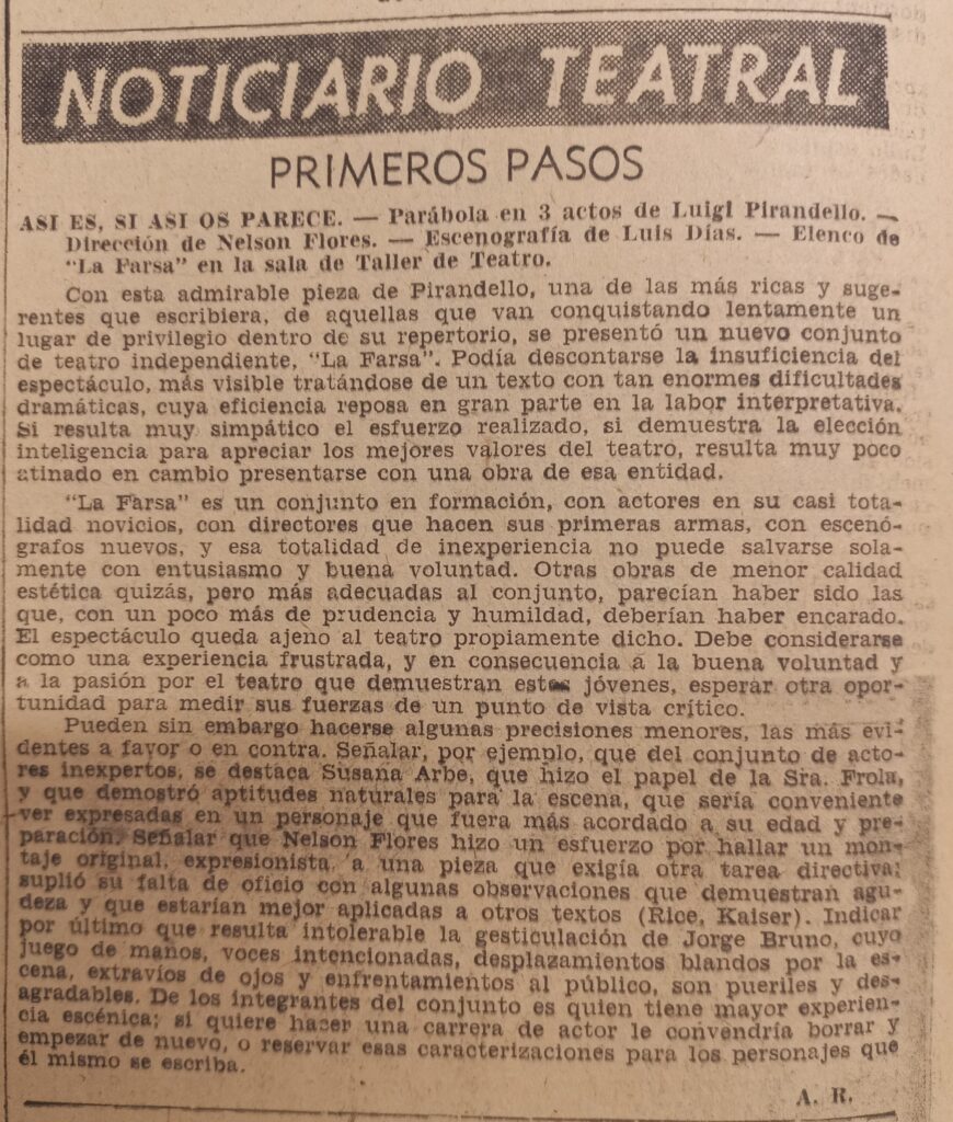 99 Primeros pasos. (Así es, si os parece, de Luigi Pirandello, por La Farsa). Acción, julio 1, 1957